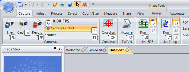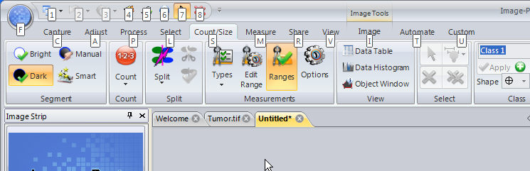 キーチップを使用すると、Image-Proキーボードのみを使用して GUI を開き、リボン棒グラフを開き、ツールをアクティブにします。アプリケーションの GUI 要素をマウスでクリックするのではなく、キーボードでキーチップを入力するだけです。